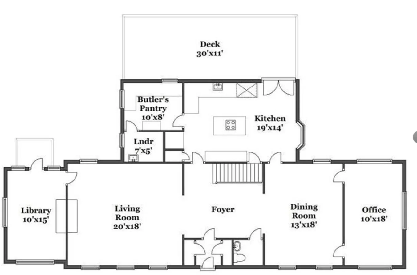 Original first floor: The client wanted a larger kitchen with an adjoining family room and space for a mother-in-law suite.