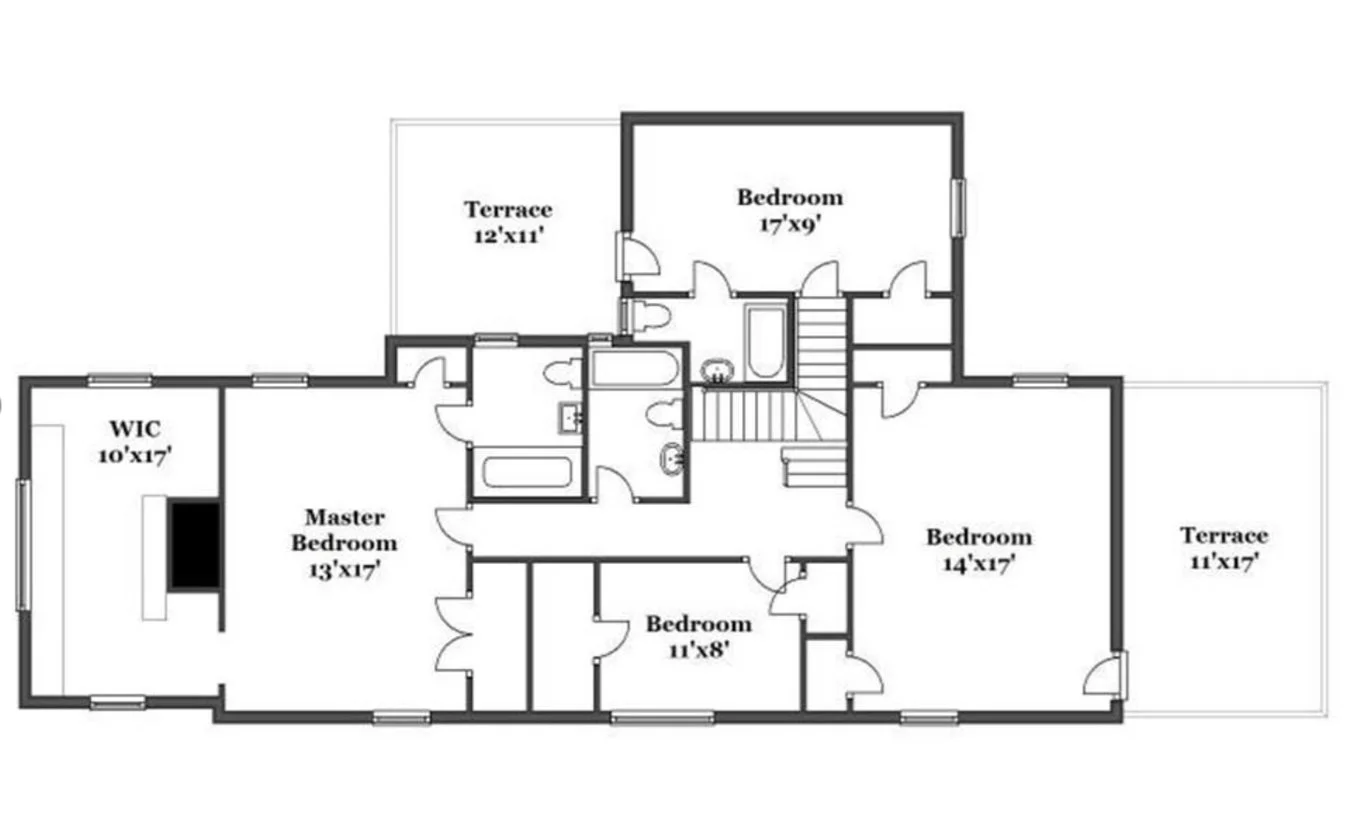 Original second floor: The layout lacked a proper primary bathroom and ensuite bedrooms, and the front bedroom was too small for the family’s needs.